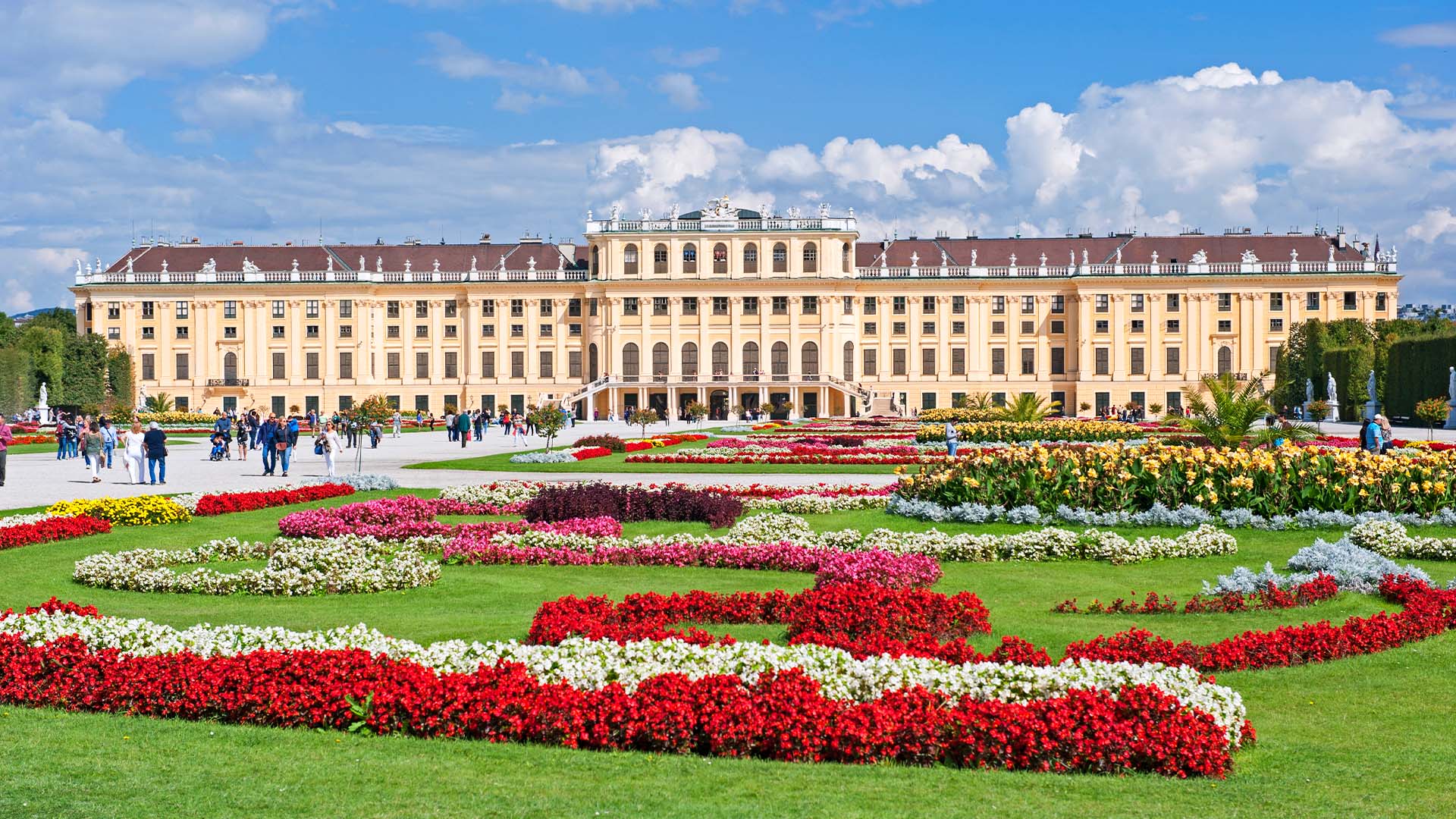 美泉宫得名于一眼泉水,这里原是一片开阔的绿地。有一次马蒂亚斯皇帝狩猎至此,饮一泉水,心神清爽,便称此泉为美丽泉。1743年,玛丽姬特蕾西亚女王下令在此建宫,这里便出现了气势磅礴的宫殿和巴洛克式花园。面积2.6万平方米,仅次于法国凡尔赛宫,是欧洲第二大宫殿。